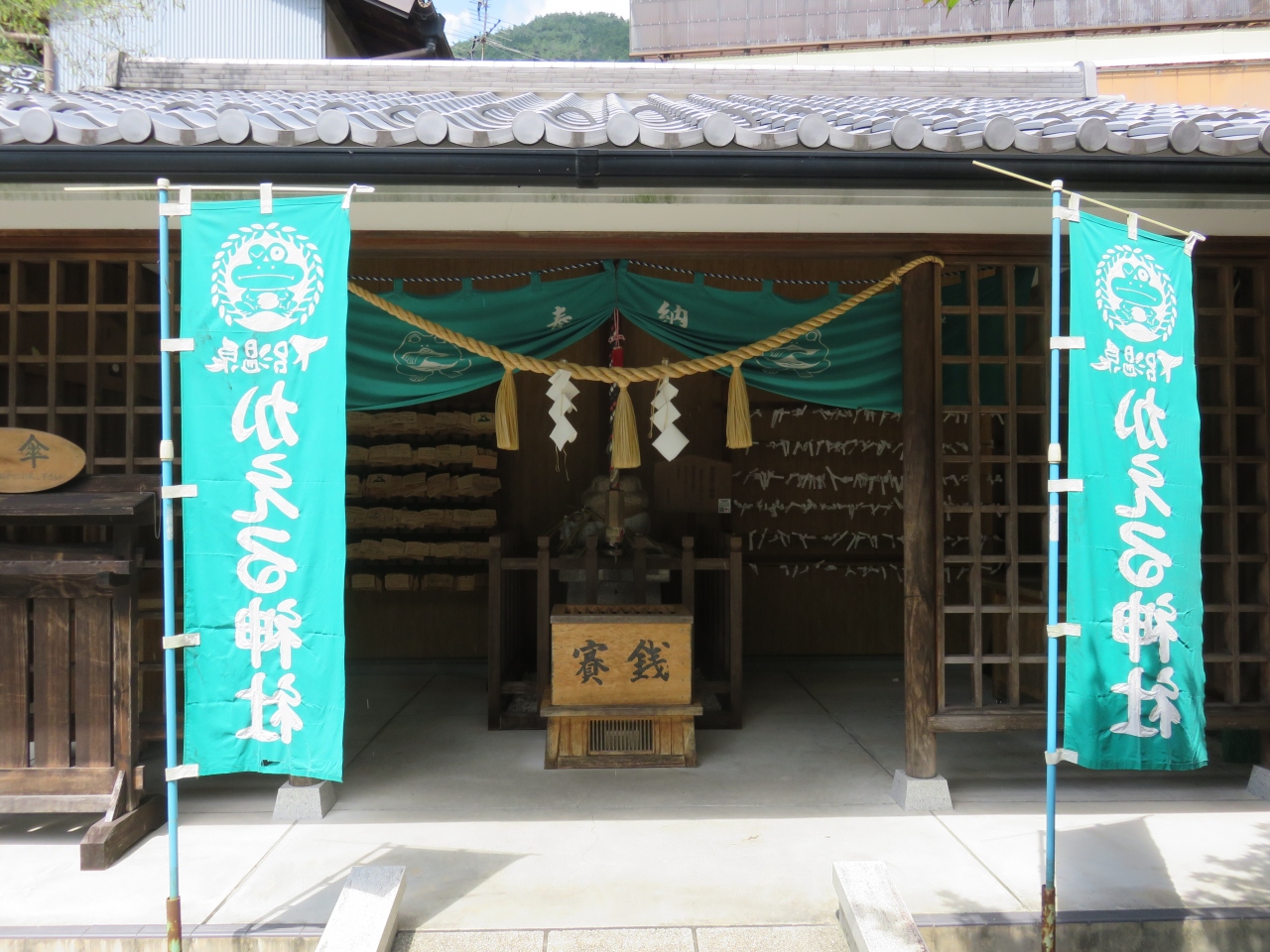 下呂温泉の中心部、温泉博物館近くにある神社です。ご神体がカエルということで、無事帰るという洒落です。