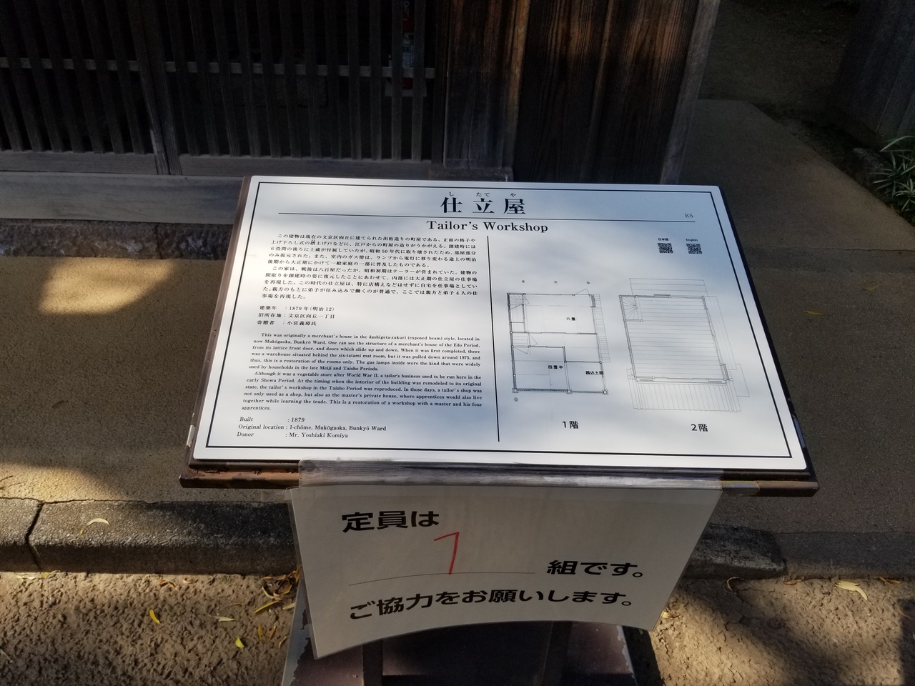 この出桁造りの仕立屋は、1979年 に現在の文京区向丘1丁目に建てられた。