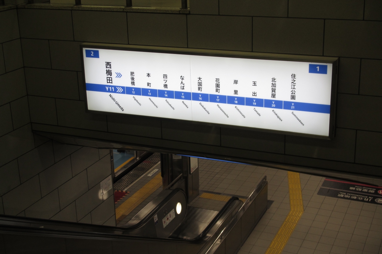 途中の大国町駅で向かい側ホームに御堂筋線が停まるので乗り換えがしやすいですが