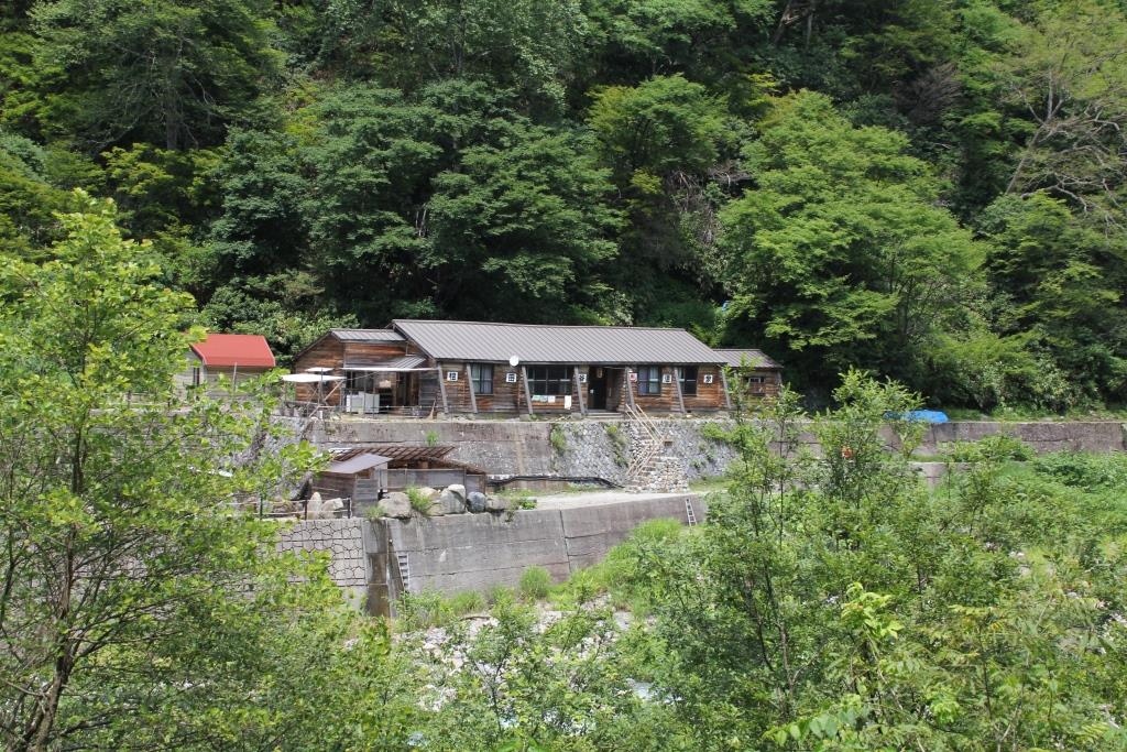 黒部峡谷鉄道の欅平駅からのんびり歩いて一時間10分ほど、遊歩道最後の長いトンネルを抜けると祖母谷温泉があります。