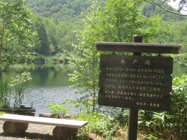 志賀高原の国道292号線沿いにある池です、志賀高原の自然探勝コースの発着地になっています、今回、信州大学志賀自然教育園から長池、三角池、田ノ原湿原を歩いて木戸池に着きました、湖畔に2つの源泉がある歴史ある温泉宿・木戸池温泉ホテルがあります、そばに木戸池キャンプ場もあり、駐車場、トイレがあります、周囲に散策路があり、自然を楽しみながら歩くことが出来ます。