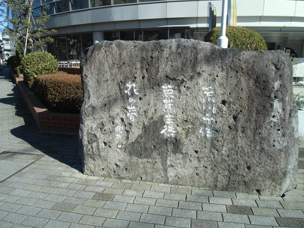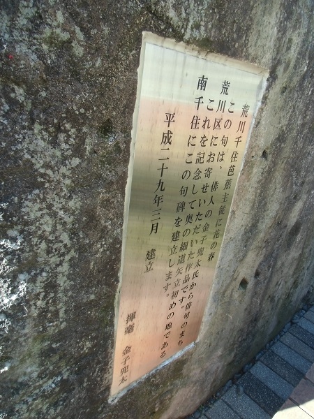 「荒川千住 芭蕉主従に 春の花」と刻まれた石碑があります。