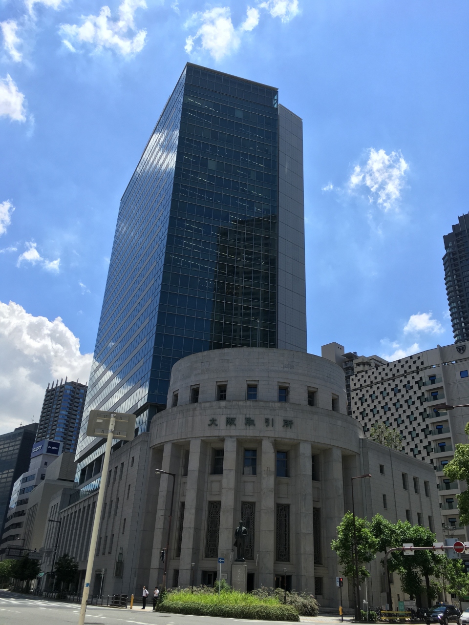 ライオンの像が印象的な難波橋の近くでランチをした後、付近を散策しました。ヨーロッパにあるような円筒形の重厚な外観の建物の前には、明治初期の大阪経済界で活躍した五代友厚の銅像が立っています。中には雰囲気の良いレストランやカフェもあり、立地も良いので便利だと思います。