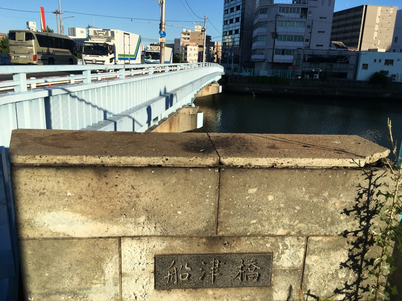 堂島川に架かる一番西端にある橋です。元禄中期以降に架けられたものと推測され、最初に架けられた場所から後にし西側(下流側)に移動されたものと考えられています。周辺は橋が多く架けられていて、どこの橋なのか一見わかりづらいです。橋を渡ると中央卸売市場があります。