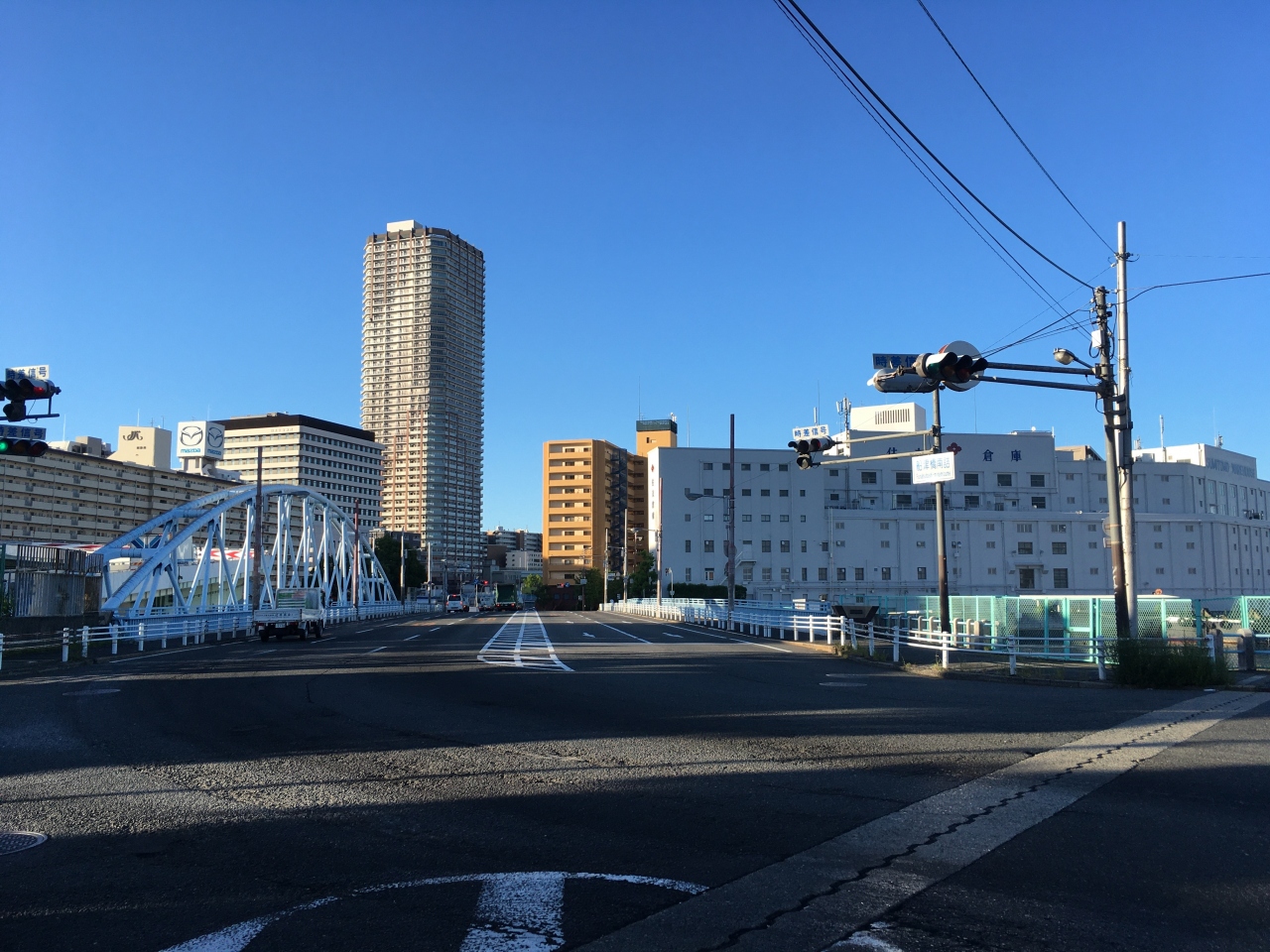 土佐堀川に架かる橋で、明治初期に中之島と川口外国人居留地を結ぶ橋として初めて架橋されました。北側には堂島川に架かる船津橋があります。端建蔵という地名は当時中之島の西端にあった蔵屋敷からや民家の土蔵など諸説あるようです。1921年に現在の橋に架け替えられました。橋の色が薄っすらと水色なのが印象的です。