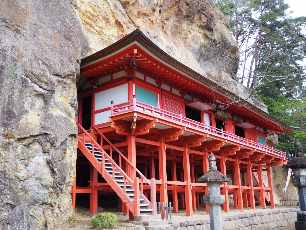 岩に本堂が吸い込まれるような造りが気になり訪問しました。近くで見ても造りはイマイチわかりませんでしたが中は普通な感じでした。他にも岩面大佛、蝦蟆ヶ池辯天堂、金堂など境内には見所があります。駐車場もあるので車の方も安心です。