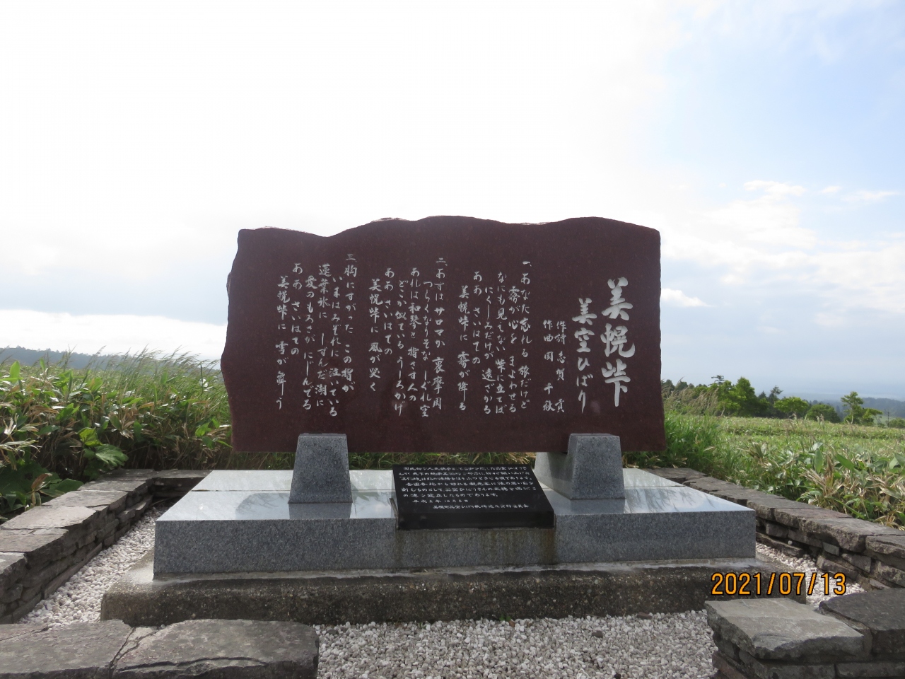 眼下には屈斜路湖が広がり反対側には美幌町に向かってピポロ高原の熊笹の平原がなだらかに下って見えます。胸のすく素晴らしいパノラマです。