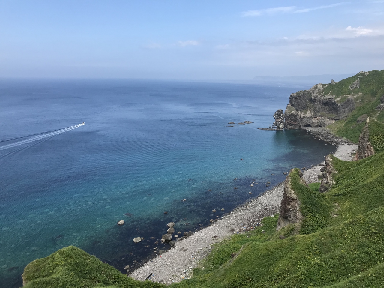 積丹半島にある一大観光スポットで、観光客も非常に多かったです。やや雲が多い天気だったものの、綺麗な積丹ブルーが見られました。