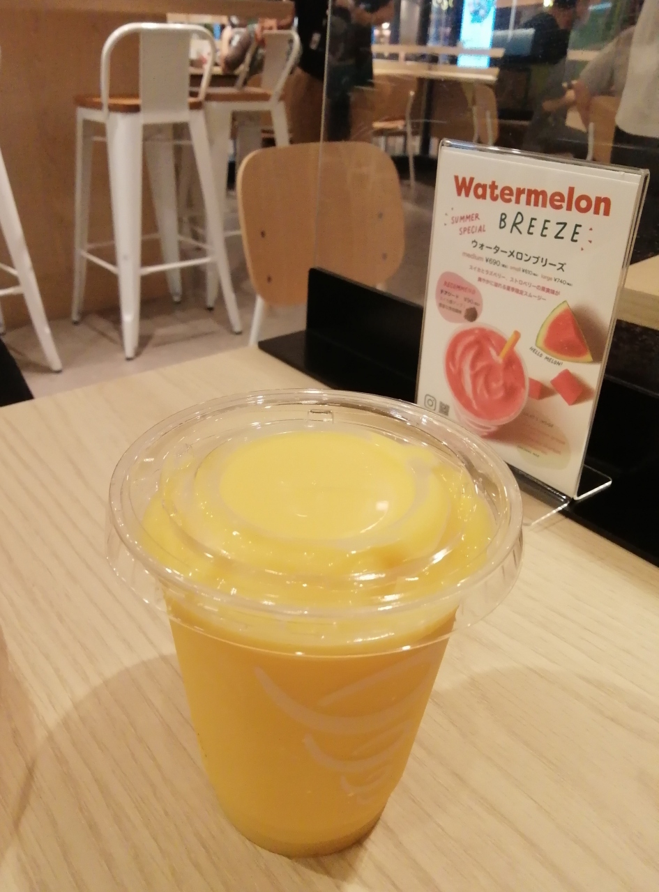 JR東京駅地下丸の内中央口改札を出てすぐにあるスムージーをメインとしたカフェ。シンプルなスムージーでおススメを聞いたところmango-a-go-goとのことでしたので、それを注文。程よく果肉感があり、冷たすぎずおいしかった。