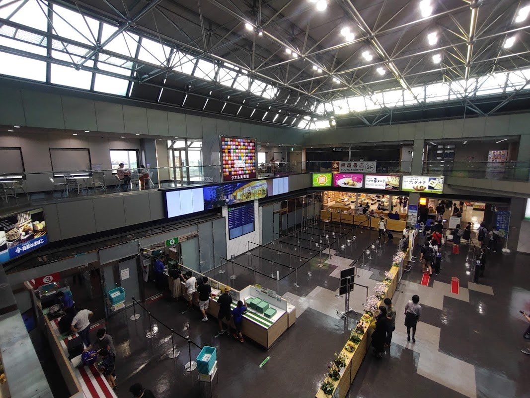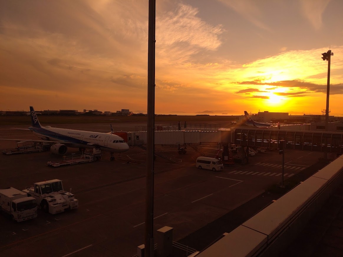 そろそろやっているかな?と思って立ち寄ってみましたが、まだ閉鎖されていました。そのかわり、すぐ近くにテーブルと椅子が置いてあって人から離れて休憩できます。外に出て夕日と飛行機を眺めることができたのはよかったです。