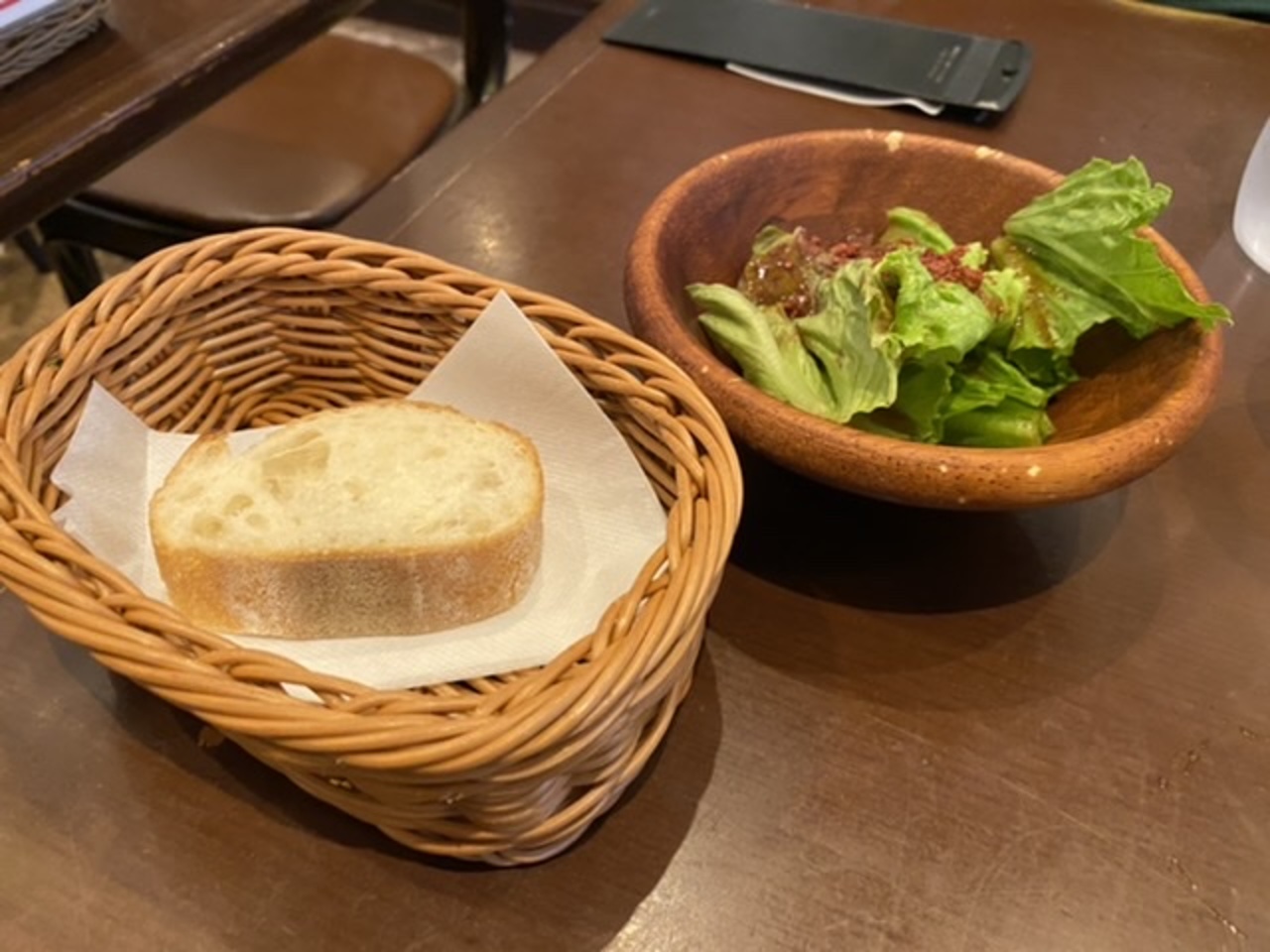 食べたのはパスタランチ!冷製ジェノベーゼスパゲッティを選びました。サラダ、パン、ジェラートが付きます。別途カフェラテフレッドをたのみました。