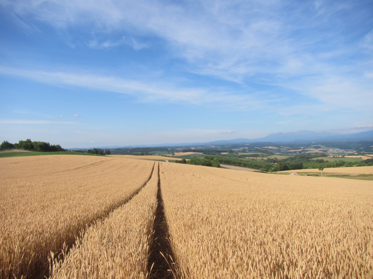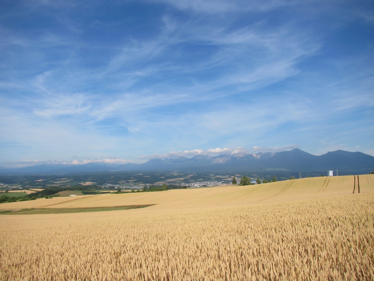 7月中旬、ラベンダーを見に富良野を訪れたついでに千望峠も訪れたところ、ちょうど麦秋とも重なる時期で、枯れた麦が黄金色に輝いていてきれいでした。