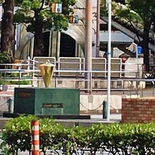 大阪駅前第3ビルの前、梅田新道交差点にあります。道路元標はとは道路の起終点を示す標識です。旧道路法の制定により、1922年に中之島の大阪市庁舎前に設置されたのがはじまりとのことです。金色のモニュメントの下には、東京からの国道1号線終点、北九州市までの国道2号線起点等、全部で7本の国道の標示がありました。
