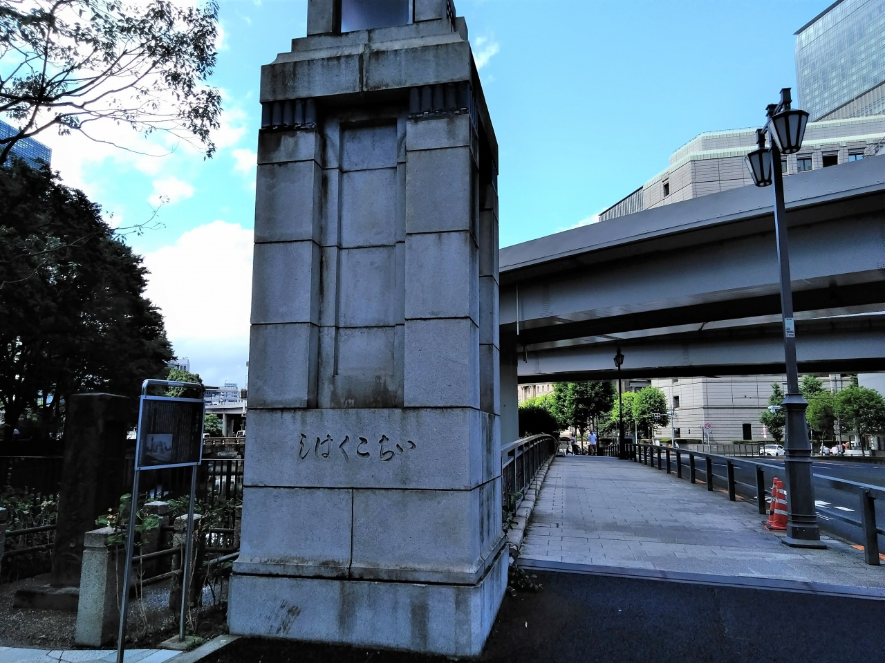 その後首都高のためや改築などを経て、1997年の大改修時に『都内最古の親柱』として貴重な近代文化遺産であることが認められ、2002年に南詰下流側の親柱1本だけ保存されたようです。