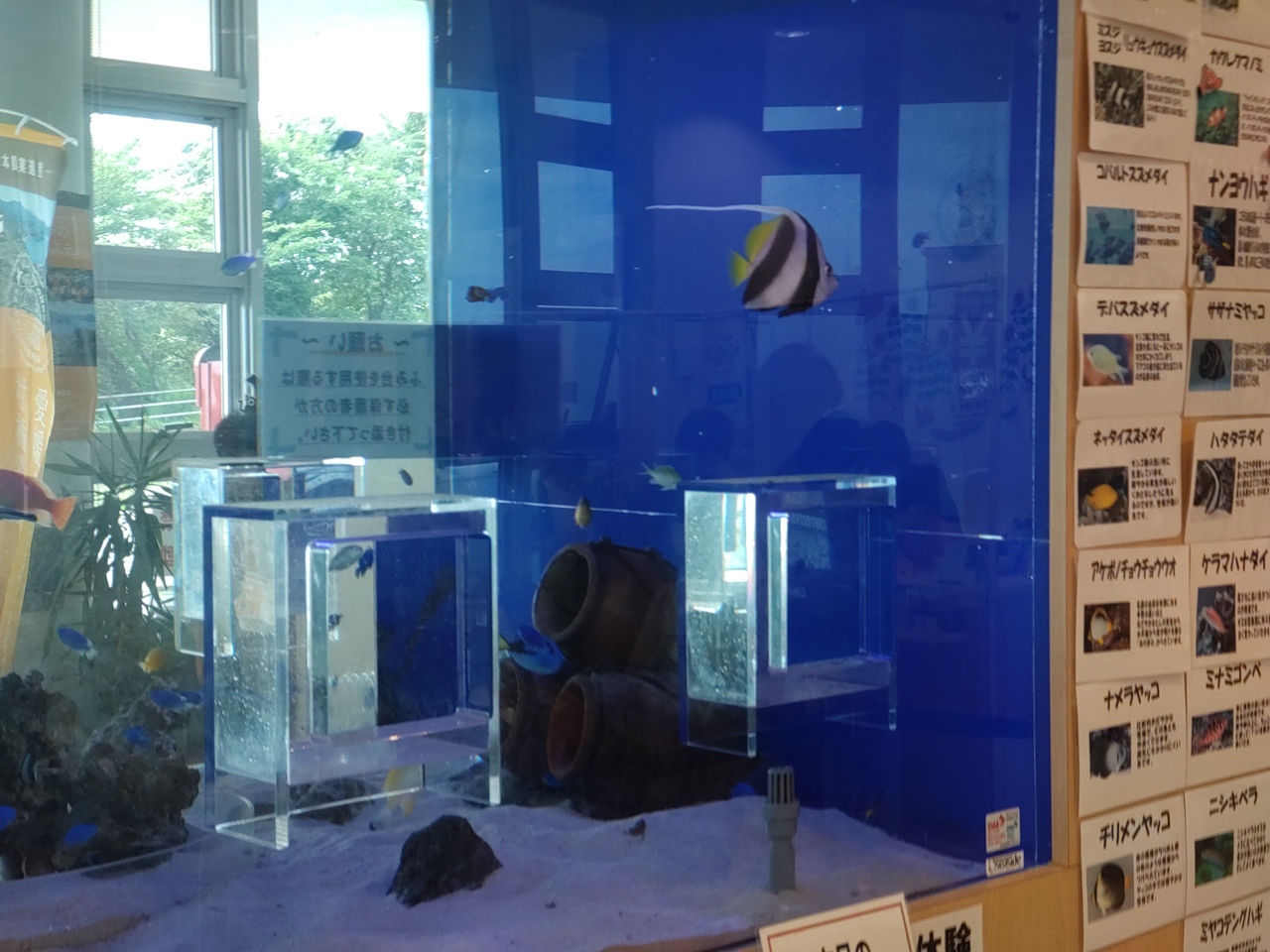 道の駅なのですが、施設内に大きな水槽があり、たくさんの魚が飼育されていました。水槽の横には魚についての解説がついていて、さながら水族館のようです。買い物を楽しみながら学べるので家族で立ち寄るとみんなで楽しめるでしょう。