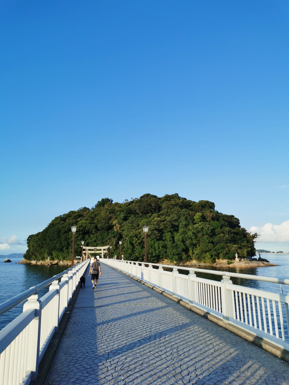 愛知県ドライブ旅。蒲郡の竹島へ。三河湾国定公園は愛知県の知多半島、渥美半島、三河湾沿岸が範囲の様です。広大なエリアの公園です。竹島園地には観光客用の有料駐車場があります。早朝6時前でしたので無料で入れました。竹島までは一本橋を通って渡ります。階段を登って島内にはいると八百富神社です。八百富神社の手前側に大黒神社が鎮座。木々が茂り神聖な雰囲気。八百富神社の裏手から龍神岬におりる事ができます。とても良い場所でした。