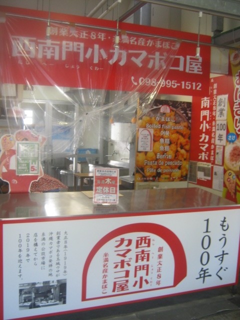 今回はこの店舗の名物「ばくだん」購入を目当てに、糸満まで足を運んでみたのですが、何と訪問時の木曜日が定休日とのことで、購入することが出来ませんでした。ただ、ここは最近某テレビ番組などでも登場して人気が急上昇中とのことで、店前に顔ハメパネルまで設置されていました。100周年を迎える伝統店でもありますので、道の駅いとまんに立ち寄った際には是非購入してみて下さい。因みにお店の場所はおさかなセンターの向かって右側一番端にあります。