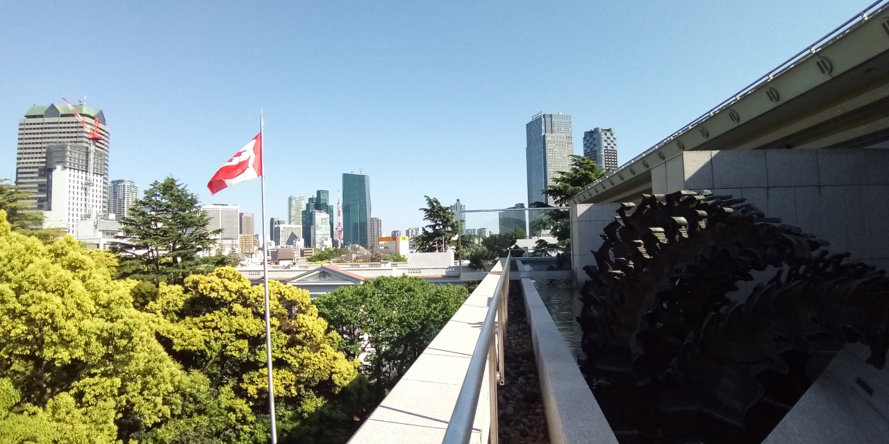 カナダ大使館は、青山通りに面していて、高橋是清翁記念公園の横なので、併せて観光するといいです。図書館やアートギャラリーも公開されていて、添付写真のように、高層階のテラスからは、周辺の絶景も眺められて超おすすめです。