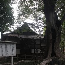 拝殿の前の大きな木がお城があったころからあるそうです。
