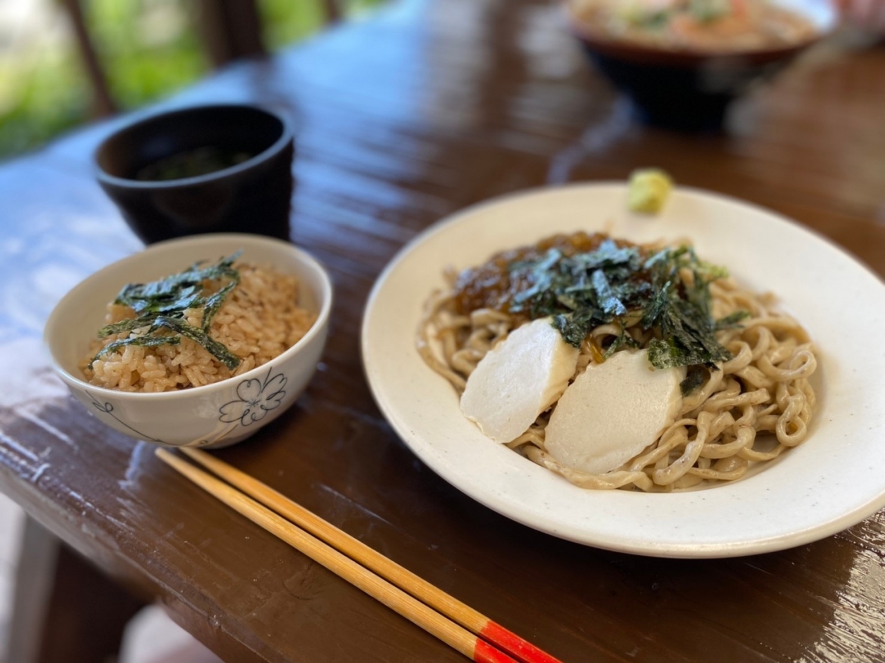 座間見の港から徒歩ですぐにある和山海雲さん、座間見に行ったら絶対に食べてみたかったもずくそば、念願かなってひと潜りした後に食べてきまし。温かいおそばと冷たいつけ麺それにジューシーをサイドに潜った後なので温かいおそば、スープはとてもやさしい味で美味しかった。冷たいおそばの麺つゆも少し甘みがあってとても美味しかったです。お店も素敵な雰囲気で、水曜がお休みですよ