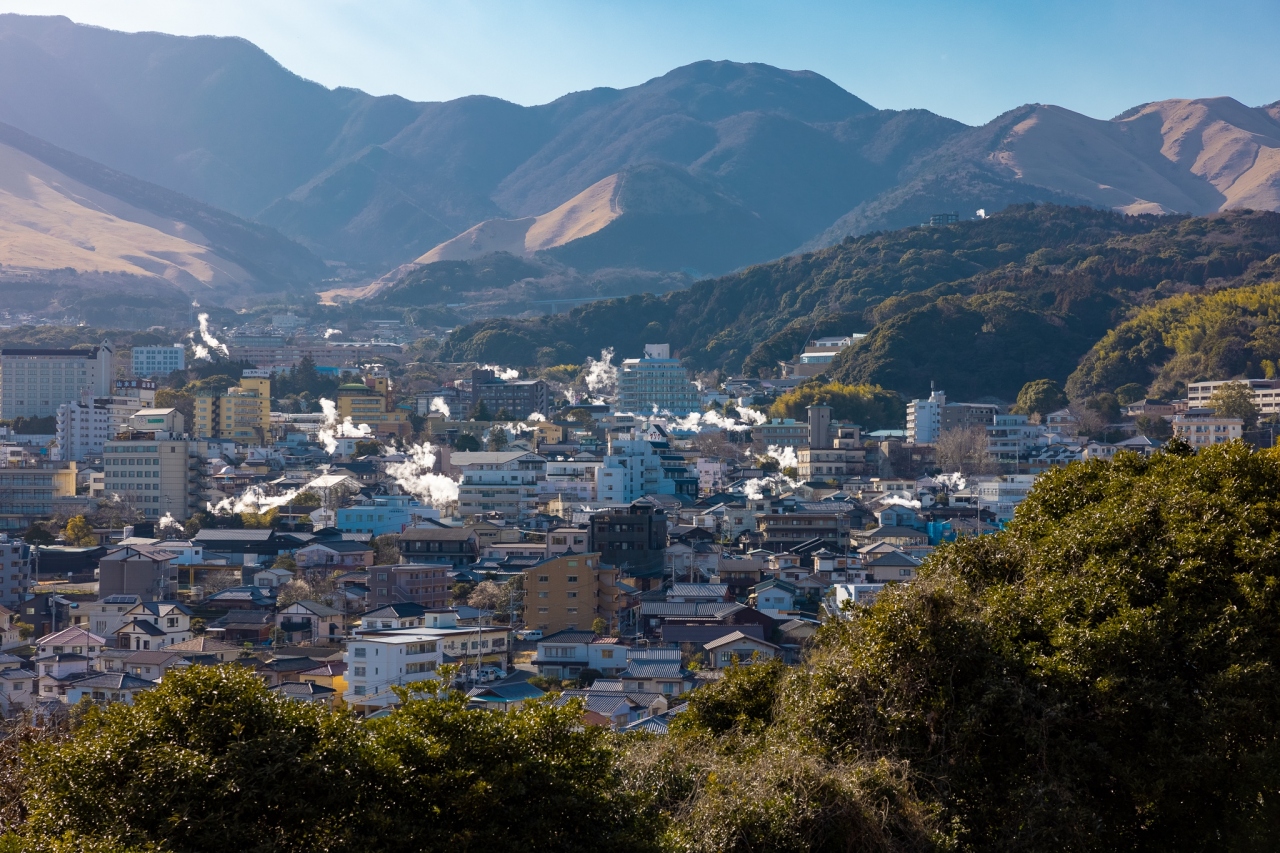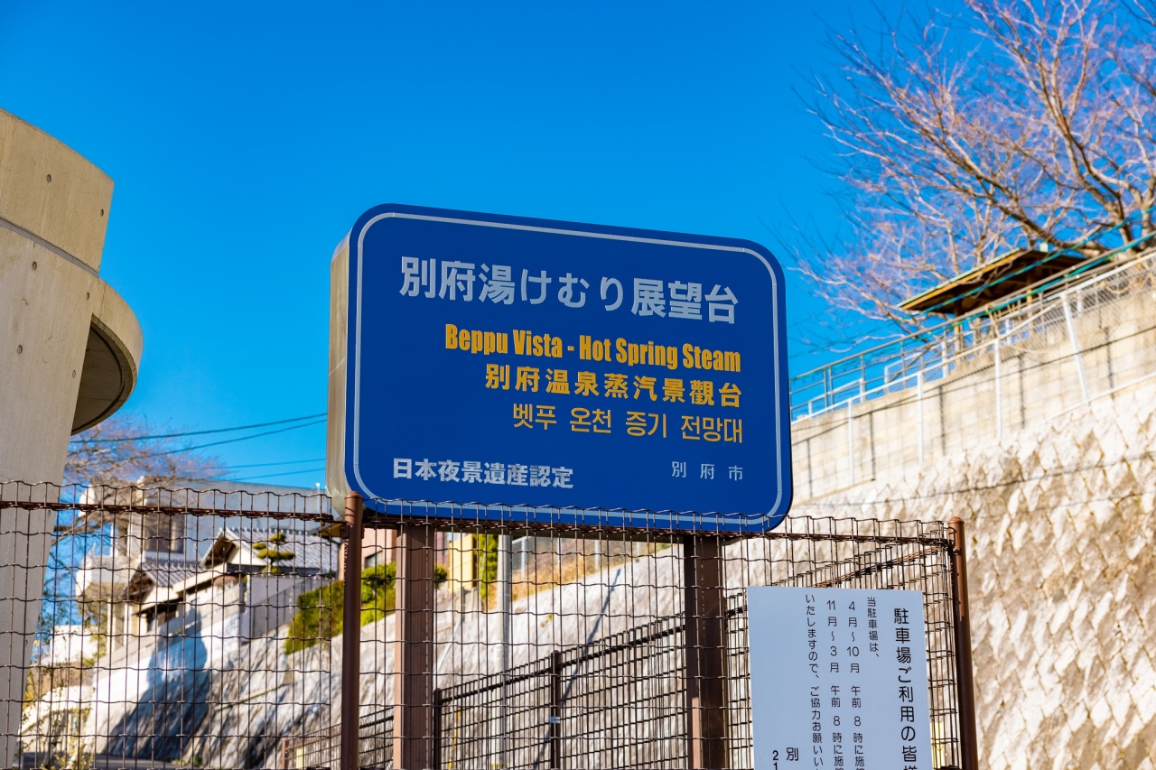 大分空港から車で40分。別府の温泉地を見下ろす高台にある「別府湯けむり展望台」に今年の2月に行ってきました。こちらは無料の駐車場やちょっとした展望台、別府の湯けむりや山の景色を分かりやすく紹介する案内板やベンチも設置されています。午後に行きましたが・・・逆光がちょっと厳しかったです。行くのなら午前中、出来れば朝が良いかと。「湯けむり」は、気温が低いほど、湿度が高いほど、多くなるすろうですが、この日はまずまずの天候だったかと。また、夜景も素晴らしいとのことですので、夜に行くのも良いかもしれません。次回は夜景を見に行きたいです。