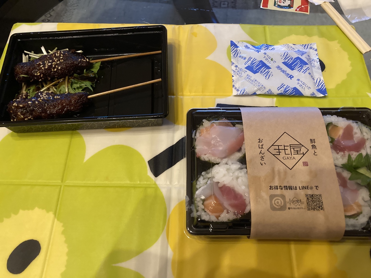 夕食にとテイクアウトで味噌串カツか海鮮巻き寿司を注文しました。夕食時間帯で少し時間かかりましたかかりましたが串カツも海鮮巻き寿司も充分美味しかったです。海鮮巻き寿司はボリューム感もあり男性でも満足出来るし、味噌串カツはビールに合いますね。