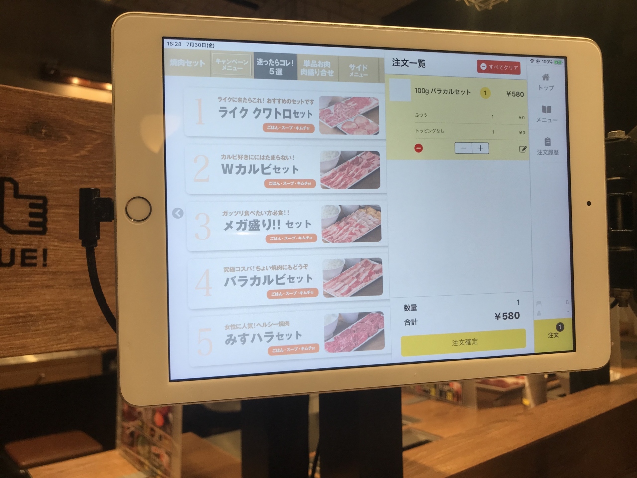 タブレット注文で、席のテーブルもかなり合理的な配置がいい