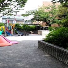 入口の間口は狭く、細長いので、大きな公園には見えないのですが、子どもの遊具も、真新しいトイレも、ボール遊びができそうな小さな広場もありました。