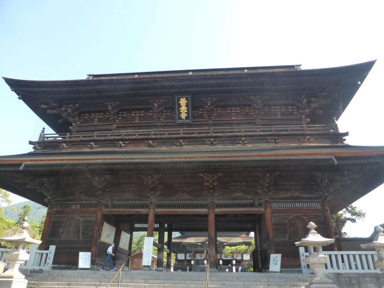 約1400年の歴史を誇る古殺、善光寺。一生のうち一度はお参りしたかった寺院です。ホテルJALシティ長野から表参道を歩いて8時半頃に行きました。朝の善光寺は人も少なく綺麗に整備された境内をゆっくりお参りできます。共通券1000円を購入し、本堂内陣参拝、お戒壇巡り、日本忠霊殿(善光寺資料館)、山門拝観を巡りました。中でも真っ暗闇の中を歩き「極楽の錠前」に触れると極楽往生が約束されるお戒壇巡りは価値があります。係の人の丁寧な説明もありました。他にも経蔵や鐘楼など見どころがたくさんあります。