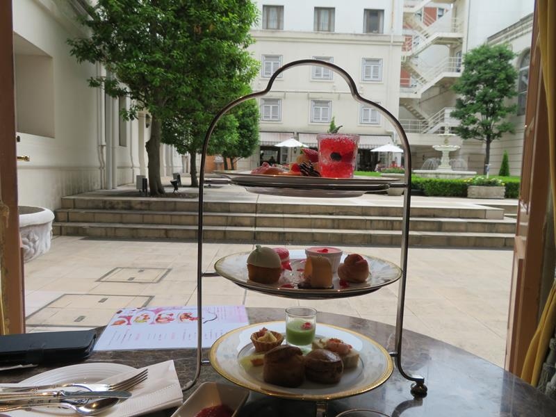 クラシックホテルの中庭を見ながら薔薇のアフタヌーンティ