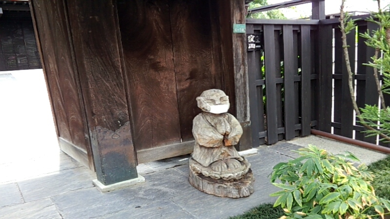 でも、このお寺で癒されたのは、門の前に建っている木製のお地蔵さまです。