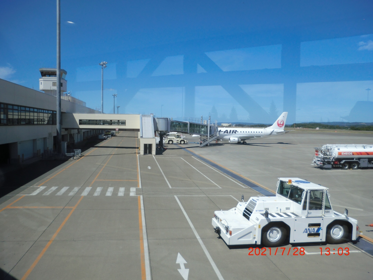 NH4777便で11:15羽田発13:00着でした。フライトは1時間45分で一眠りしてると着きました。