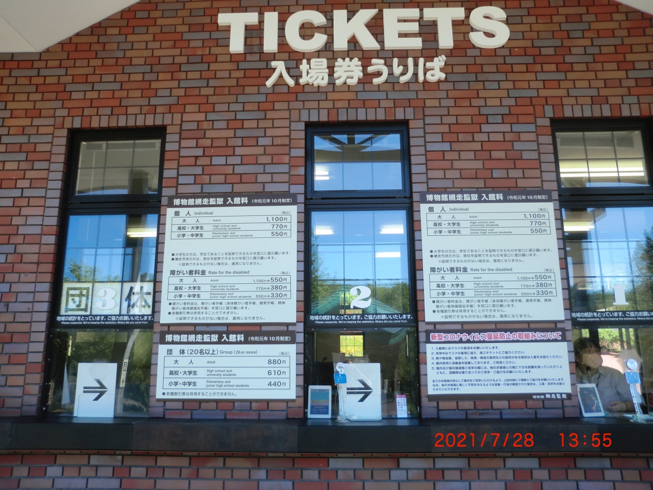 入場料は大人1100です、障害者割引は本人のみ半額でした。観光時間1時間強でしょう。