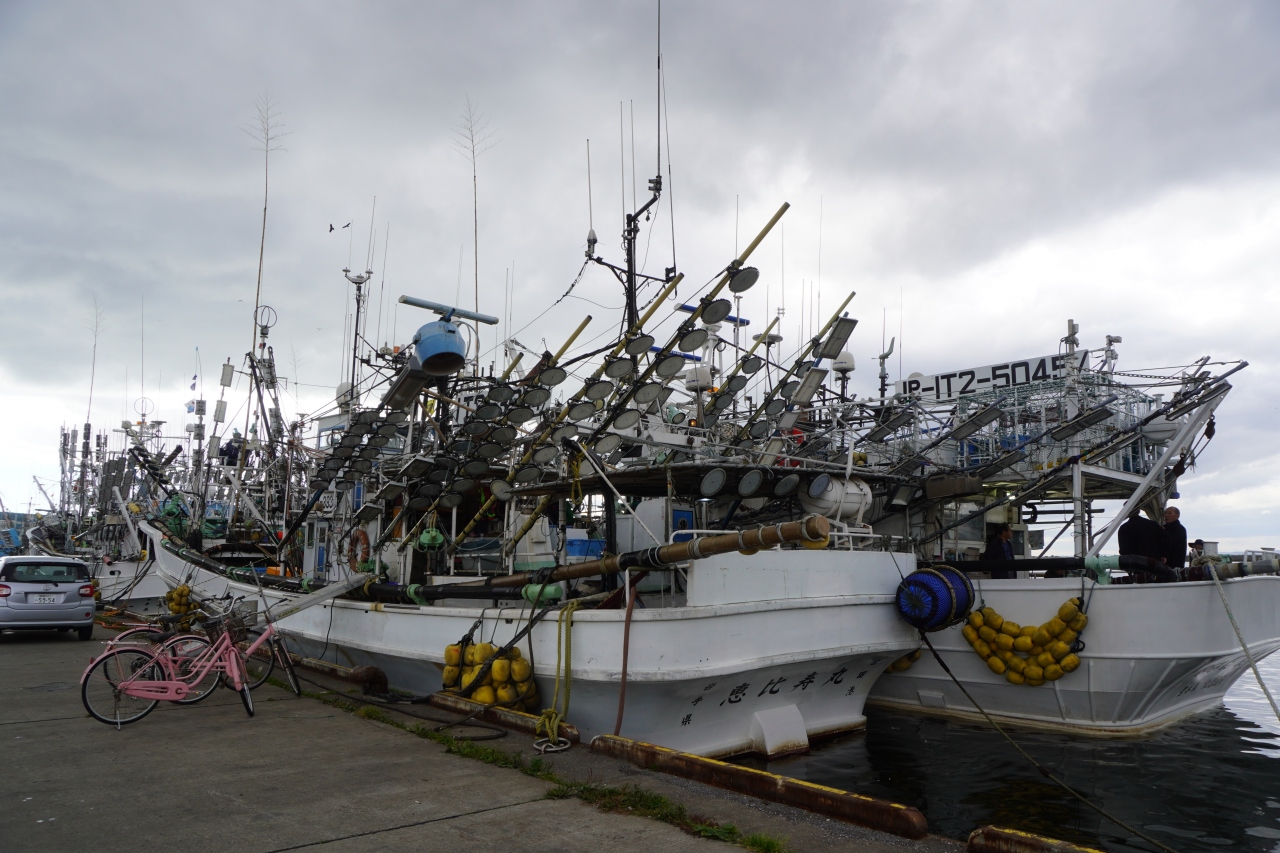 釧路漁港へは釧路駅から歩きましたが、ちょっと距離がありますね。人影はほとんどなくて、賑わいも活気もありませんでしたが、港には集魚灯を積んだ漁船が何隻も停泊していて、漁業が重要な産業であることは伝わってきますね。