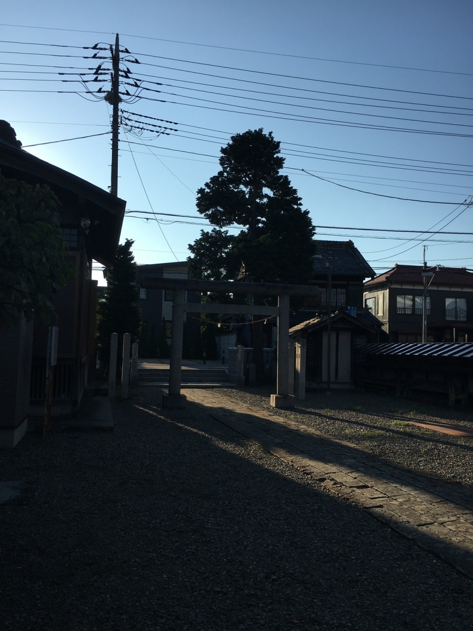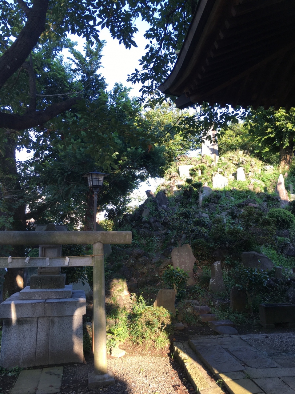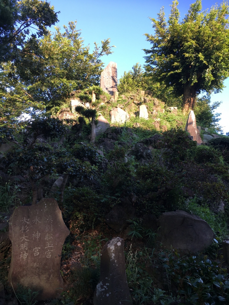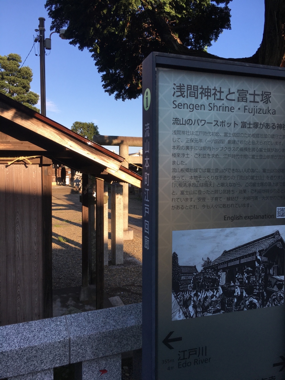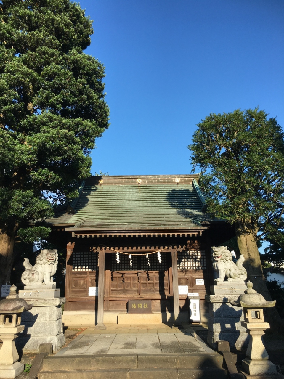 住宅街にある神社で、鳥居を潜ると正面に社殿と左右には末社がありました。社殿の真後ろに富士塚があり、富士山を模していて上がることが出来ます。溶岩等の岩があり、岩や石を掴みながら登りました。四合目、八合目等、標もあります。