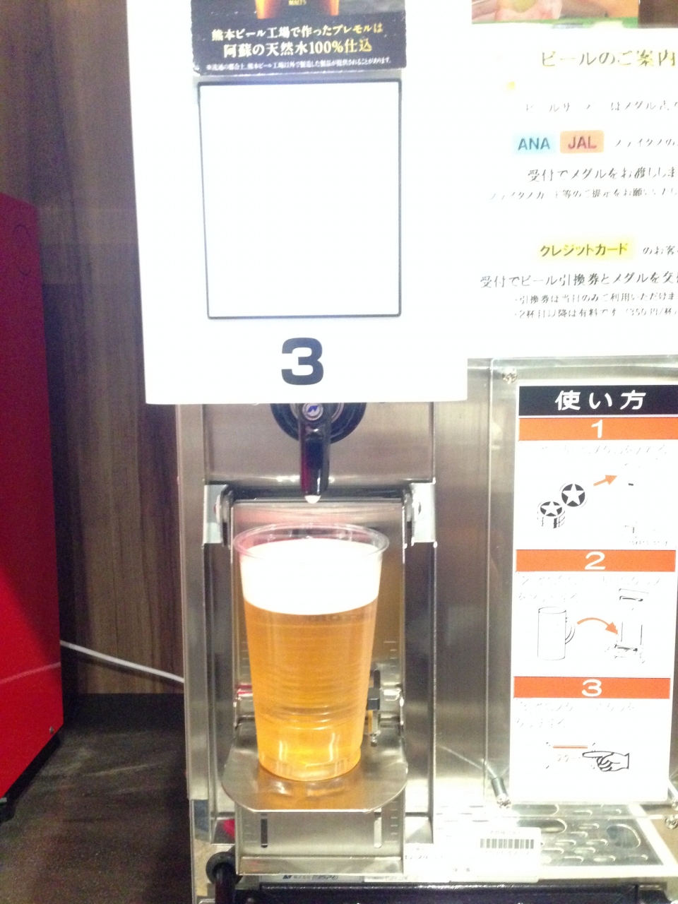 保安検査場後に有るカードラウンジです。普通アルコールが有料なのに此処は生ビール1杯無料でした。入る時頂ける無料券をコインに変えてもらってサーバーで入れます。1人用の椅子が多くてそれぞれにコンセントが付いて、ビジネス客が多いのがわかりました。