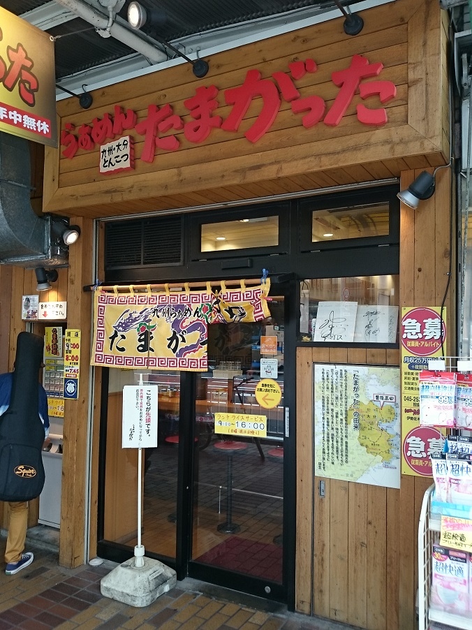 JR関内駅から徒歩7~8分程度、横浜市中区長者町にある九州大分ラーメン店です。横浜散策の途中に立ち寄り、らぁめんをいただきました。具は海苔2枚、チャーシュー3枚、ネギで、よく煮込んである豚骨スープと細いストレート麺の一品です。麺の量が少なめで満腹感は得られなかったものの、濃厚でトロッとした豚骨スープは癖になる味。美味しかったです。