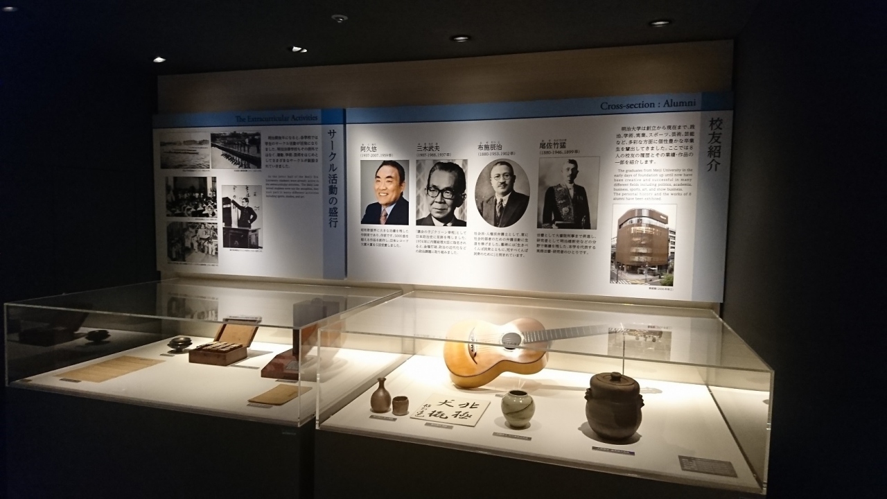 千代田区神田駿河台1丁目の明治大学アカデミーコモン地下1階にある博物館です。入館料は無料で、大学史展示室、商品部門、刑事部門、考古学部門のテーマ別に展示が分かれていました。見ごたえのある展示物が多いので、おすすめスポットです。