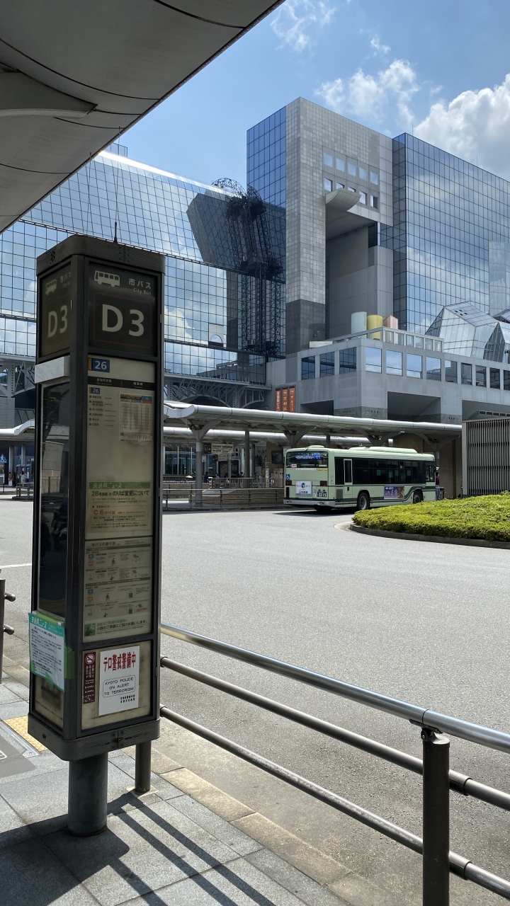 京都駅のメイン降車口である烏丸口を出ると京都タワーとともにバーン!と広がるのが京都駅烏丸口バスターミナル。京都市バスが圧倒的な本数と規模をしめますが、京阪、京都バス、JRバス、そして高速バスのJRバスや民間のバスまでよりどりみどり。方面別に乗り場が別れているので、わからなければ質問を。若くてもそうでなくても案内の人は行き先を聞いただけでバスの乗り場及び系統番号を即座に教えてくれます。