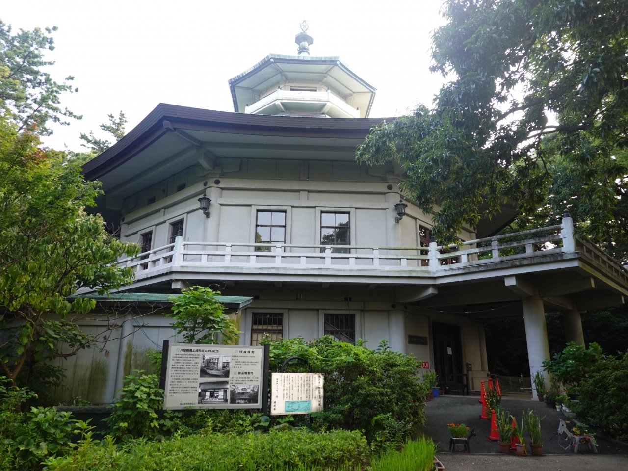 三渓園から徒歩15分ほど、本牧臨海公園内の一画にあるのが「横浜市八聖殿郷土資料館」です。地図で近く見えますが、三渓園からは坂を下り、最後に上り坂や階段があるのでたどり着くのには意外と時間がかかりました。よくあるタイプの郷土資料館で入館は無料です。三渓園観光後の散策コースとして立ち寄るのがよいと思います。