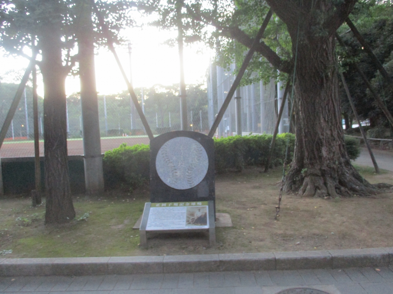 上野恩賜公園内、東京文化会館の裏側にある草野球場です。明治20年頃、俳人の正岡子規が上野公園内で草創期の野球を楽しんでいたことから愛称が付きました。「春風や まりを投げたき 草の原」の句を刻んだ碑がありました。正岡子規は数々の野球用語を日本語訳したことでも知られていて、野球をメジャーなスポーツにした人であることを再認識しました。