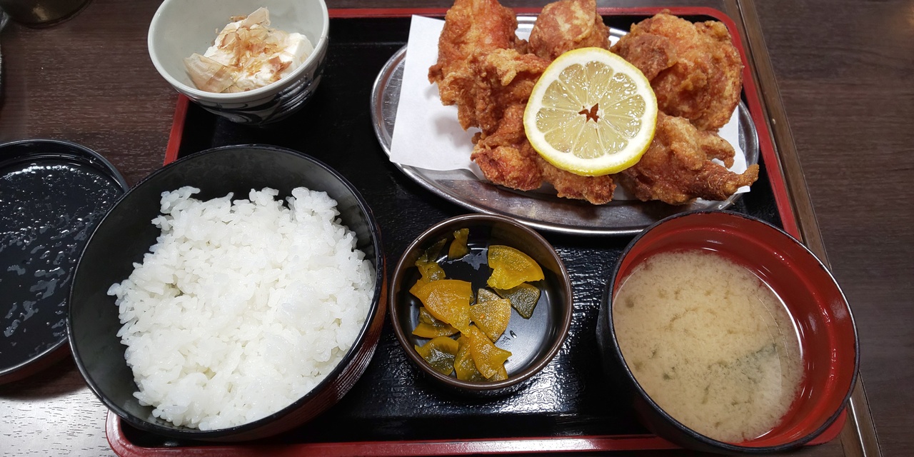 940円で、ごはん、小鉢、つけもの、ざんぎ、お味噌汁という感じの定食となっています。ざんぎなら手も汚れずに食べられます。もも肉のジューシーな部分ばかりなので半身揚げで必ずついてくる胸肉が苦手な方にもおすすめです。