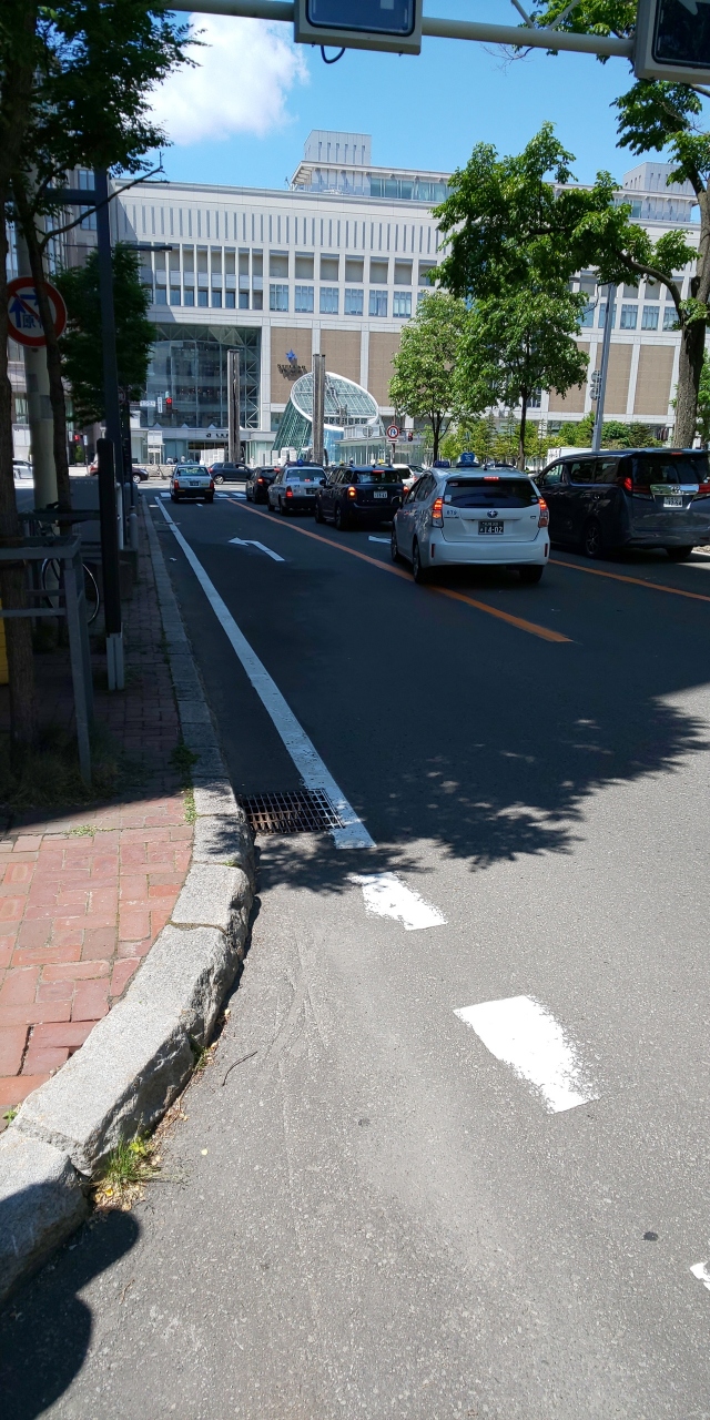 まっすぐ進むと大通り公園となっています。この道を進めば大通り公園、札幌テレビ塔など主要観光地に行けるというわかりやすさもあって、人通りも多いなと思います。
