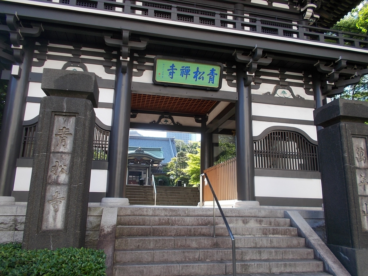 この青松寺は愛宕にあるNHK放送博物館がある丘の東側にある寺です。愛宕下通りに面した寺です。山門も壮大で素晴らしいものです。境内も広く本堂も荘厳なものです。創建は太田道灌の命を受けたもので16世紀中ごろです。16世紀末に現在の場所に移築したのです。曹洞宗の寺院です。山門には青松禅寺と表示されています。