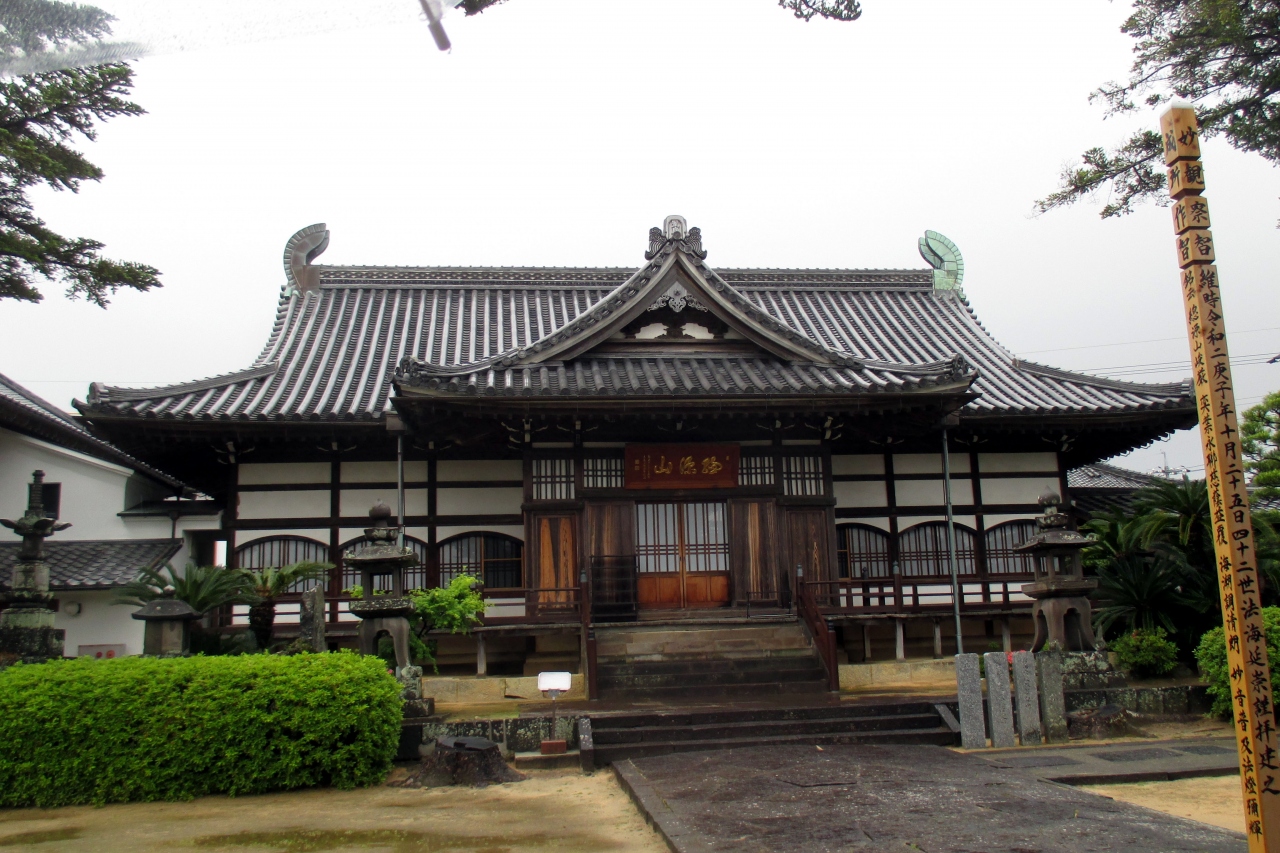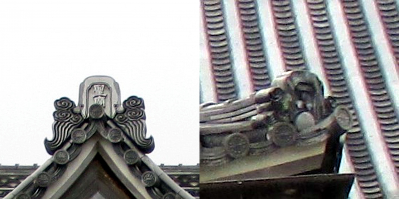海潮寺の本堂は藩校明倫館の聖廟を移築したとのことなので、目を皿のようにして、屋根瓦を見ましたら、鬼瓦というのではなく軒平瓦なのかと思いますが、「聖廟」の文字や毛利家の家紋「一文字三星」が見付かりました。海潮寺は、元々は現在の島根県温泉津町に、1408年(応永15年)に別の寺号で建立されたそうです。毛利輝元の防長移封に従い、1607年(慶長12年)に萩に移り、山号・寺号を現在のものに改めたとのことです。 江戸時代には長門・石見国内に11ヶ寺の末寺を擁します。1874年(明治7年)に、火災で、山門と土蔵を残して全焼してしまったそうです。そこで、藩校・明倫館の聖廟を買収して、移築し本堂としたのだそうです。山号は総源山で、曹洞宗のお寺さんです。