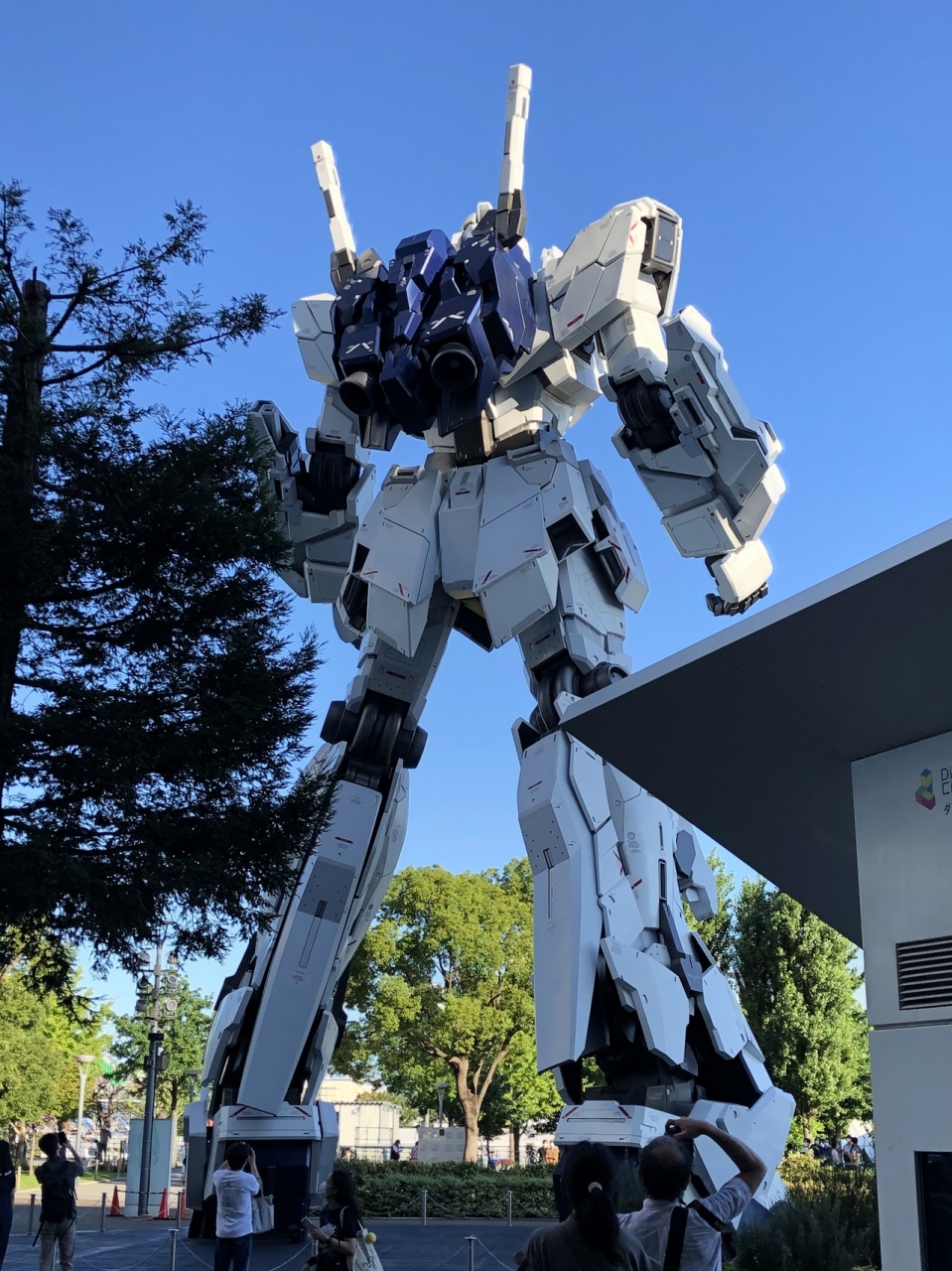 ダイバーシティの横にある等身大のガンダムが目印です。珍しく一本の角が出たガンダムは夜もライトアップされてカッコいいです。やっぱりいいです。