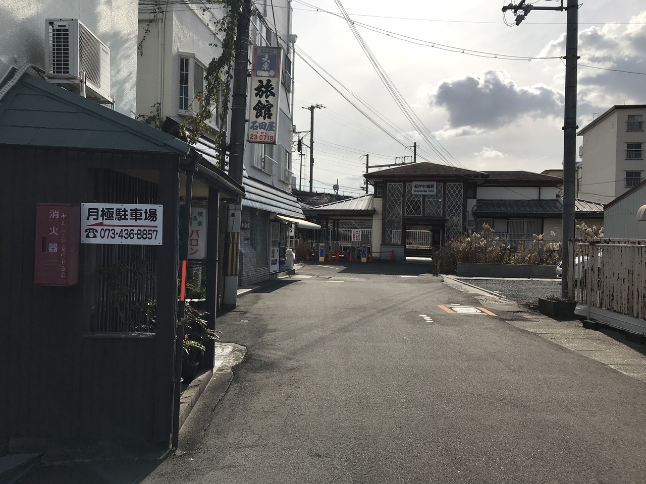 阪和線は高架駅で、駅舎は階段を降りた旧和歌山線側にあり、広い更地にホームが残る。鉄道が走っていた光景をまざまざと見せつけられる。駅舎も小さいながら時代を感じる趣きがある。高架を越えると建物が建ち廃線跡は確認できない。