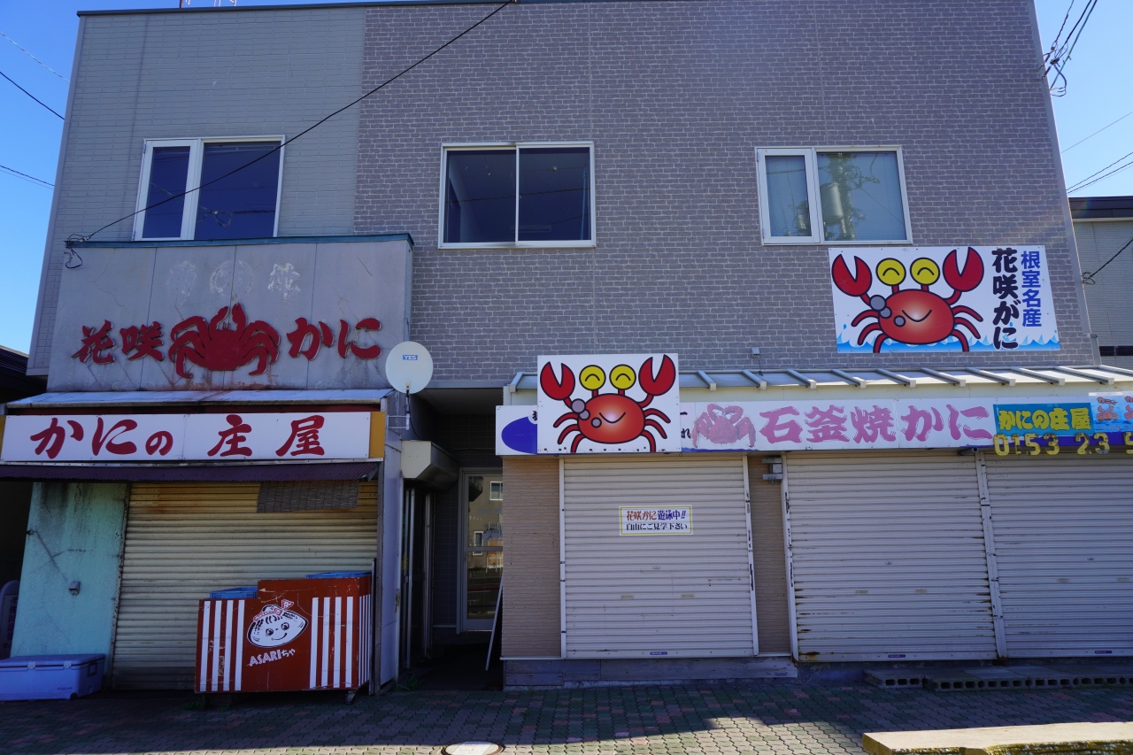 かにの庄屋は、根室駅前すぐの花咲ガニのお店。生きた花咲ガニを水槽で見せるみたいなことをやっているようですが、ちょっとお店が開くのが遅いですね。8時過ぎにオッチャンが来て開店準備をしていましたが、もう少し早く開けてほしいような気がします。