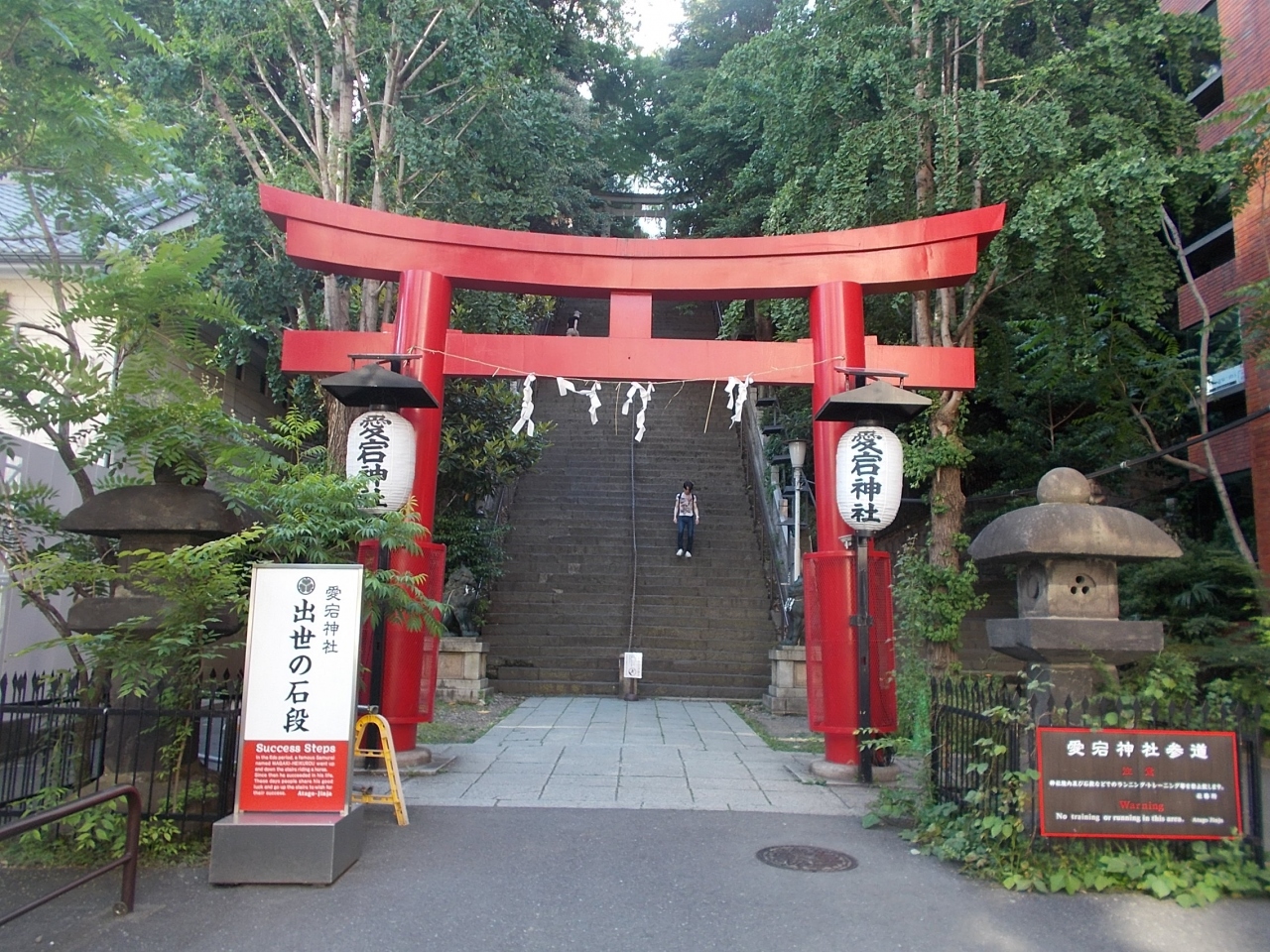 この愛宕神社参道は愛宕山の頂にある本殿に行くときに上る急こう配の石段が参道になります。のぼりで大変ですがのぼり終わったあとその石段を見るとその勾配に驚きます。その急こう配の石段を徳川家光の願いをかなえるために馬で登り下った曲垣平九郎の故事は今も伝わっています。参道に苦労してたどり着いた本殿はより強く願いを込めます。