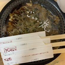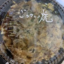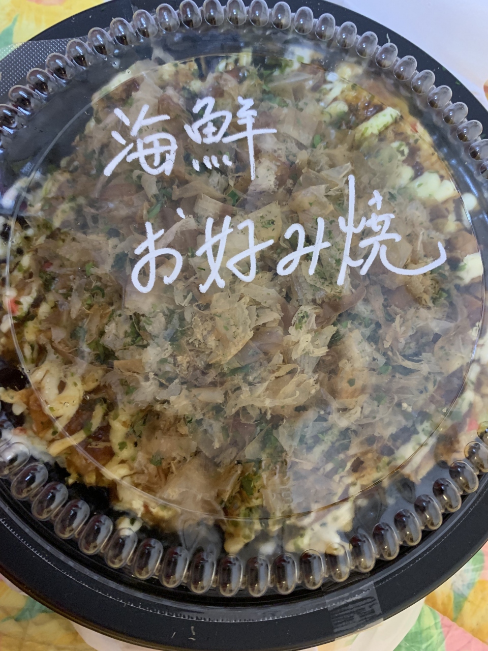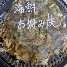 海鮮お好み焼きは、ぷりぷりのエビが たくさん入っていて